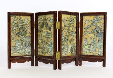 CHINE, XXe Paravent miniature à quatre feuilles en marbre et décor de scènes animées…