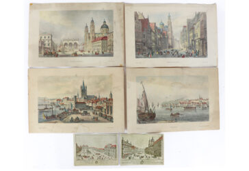 Ensemble de quatre gravures en couleurs reprenant des vues de villes allemandes dont…