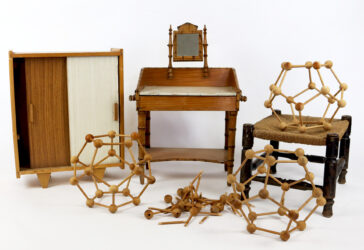 Ensemble de jouets en bois comprenant une coiffeuse, une armoire circa 1960, quatre…