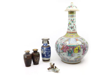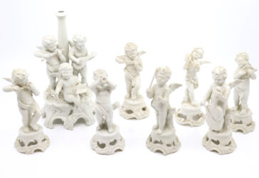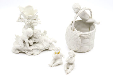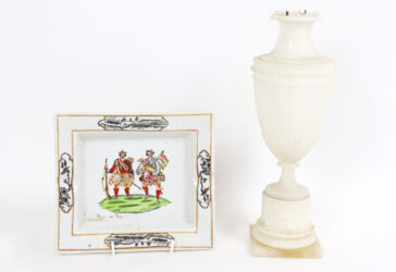 Cendrier en porcelaine à décor de musiciens écossais. On y joint un pied de lampe…