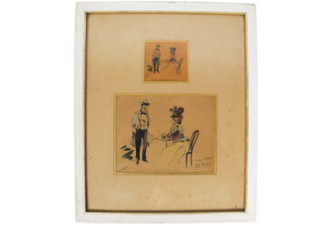 Ensemble comprenant 1 carreau émaillé signé Maria LLUIS (19,7 x 19,7 cm), 1 dessin…