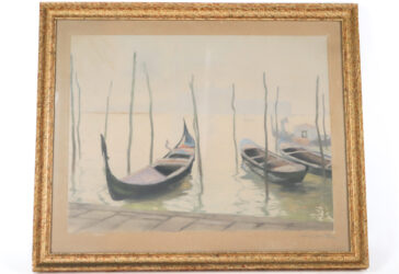 Ecole FRANCAISE du XXe Gondoles vénitiennes Lithographie en couleurs. Signée en bas…