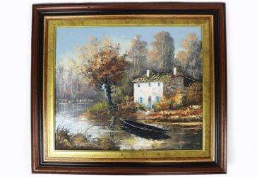 Robert MOGISSE (1933) Maison sur l’étang Toile. Signée en bas à droite. 46 x 55 cm