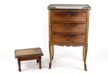 Chevet de style Transition en bois de placage ouvrant par trois tiroirs (avec clés),…