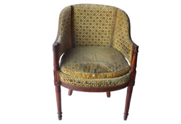 Bergère à dossier gondole en bois naturel mouluré et sculpté, montants balustres