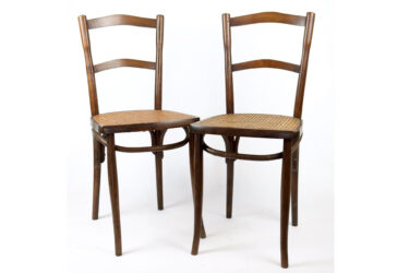 Paire de chaises bistrot en bois naturel et assise cannée. (Marque T sous la ceinture)….