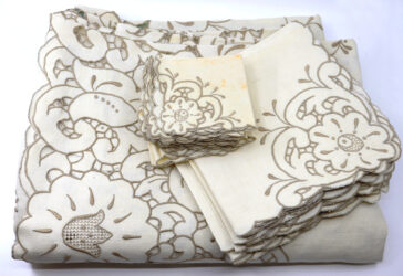Ensemble comprenant une grande nappe, 12 serviettes et 12 petites serviettes en coton…