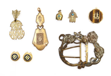 Ensemble de bijoux fantaisie comprenant notamment un pendentif « main de Fatma », un…