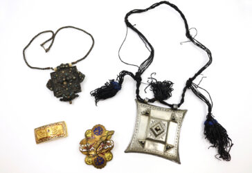 Ensemble de bijoux en métal comprenant un pendentif reliquaire Ga’u (Tibet) en métal…