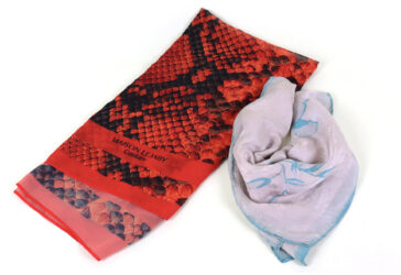 Ensemble comprenant deux foulards dont un en twill de soie à motif de fleurs et un…