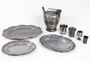 Ensemble en étain comprenant : – un plat oblong à bords contournés XVIIIe siècle