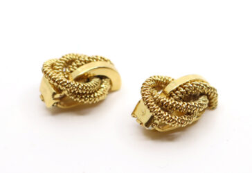 BOZART, Italie Paire de clips d’oreilles en métal doré à décor d’entelacs.