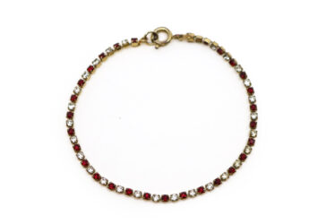 Bracelet ligne en métal doré serti en alternance de cristaux blancs et rouges.