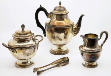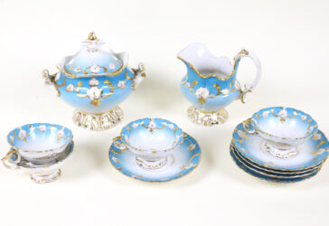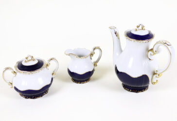 Ensemble assorti (mais dépareillé) comprenant une cafetière, un pot à lait, un sucrier…