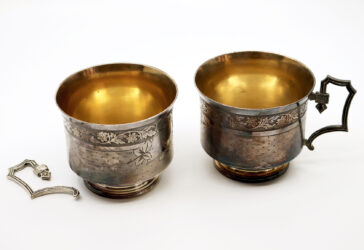 Paire de tasses sur piédouche en métal argenté à décor de frise feuillagée en partie…