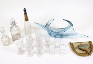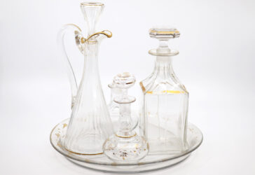 Ensemble en verre moulé comprenant un vase rectangulaire et quatre petits bougeoirs…