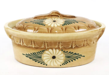 DENBY, England Sucrier couvert en grès émaillé à décor polychrome de personnages