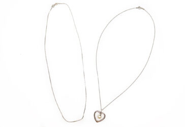 Ensemble de deux chaînes en argent et un pendentif cœur ajouré en argent orné d’une…