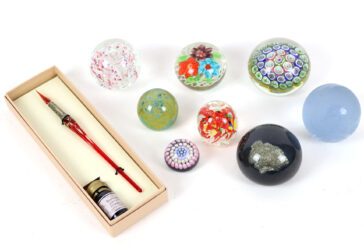 Ensemble comprenant : – RONSON. Briquet de table en métal argenté de frome balustre…