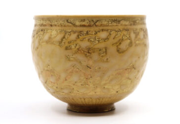 Petit cache-pot en céramique émaillée à décor irisé et rehauts de dorure. Haut. :…