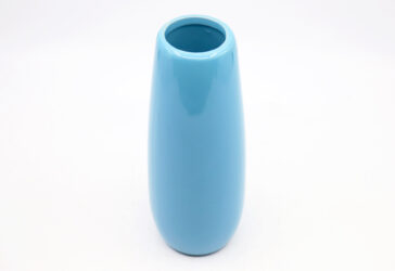 Vase soliflore en céramique émaillée bleue turquoise. Monogrammé YR sous la base….