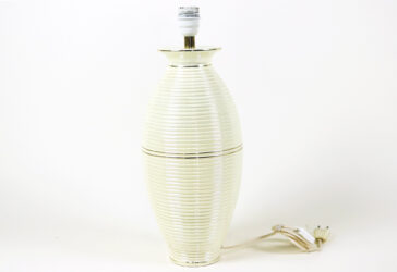 Louis DRIMMER (XXe) Pied de lampe en céramique émaillée à décor irisé, rehauts de…